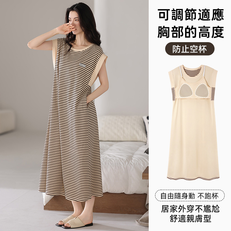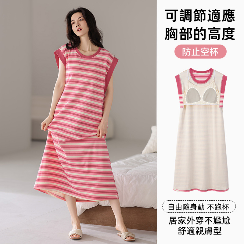 條紋舒適睡裙,可外穿居家都是舒適好看的。100%純棉親膚舒適,敏感肌都不怕!